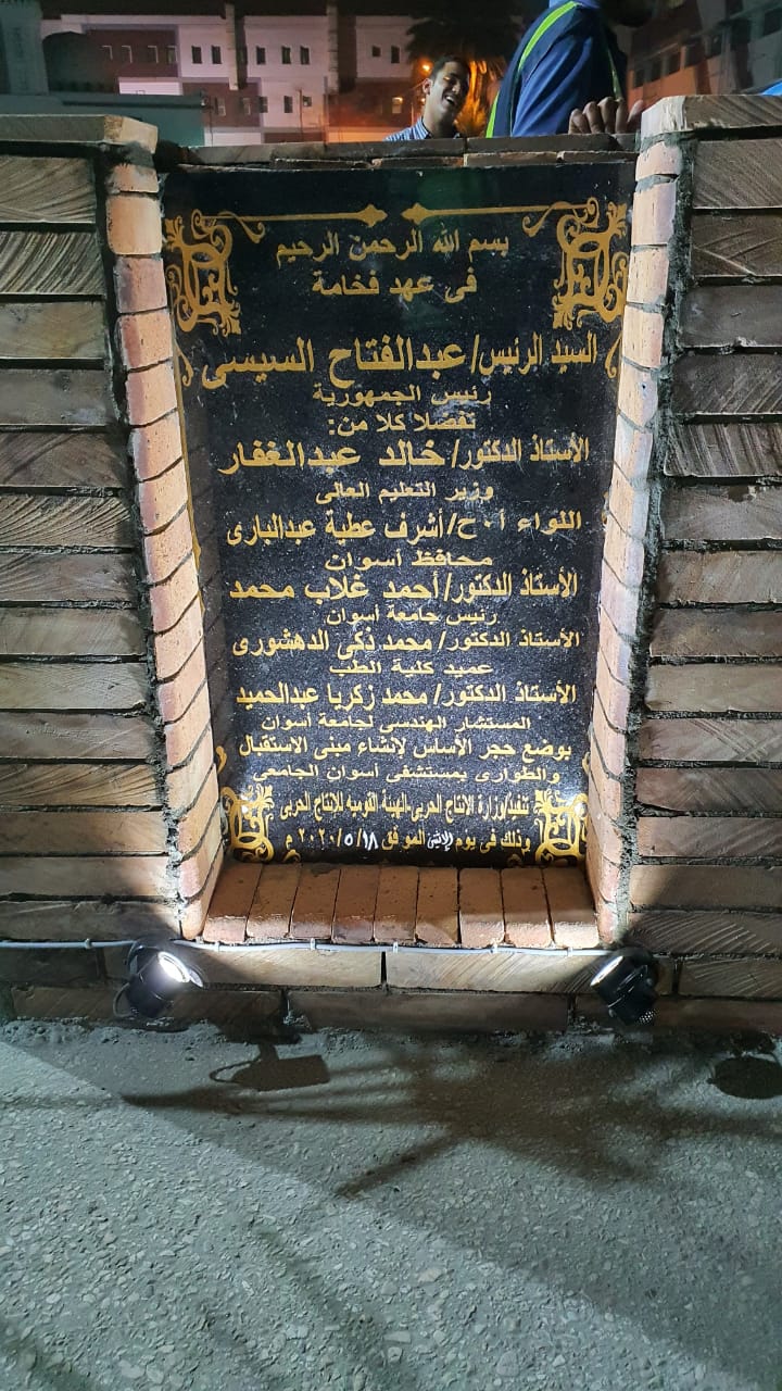 وشهد وضع حجر الأساس لإنشاء مستشفى الاستقبال والطوارئ الجديد اللواء أشرف عطية محافظ أسوان والدكتور أحمد غلاب محمد رئيس جامعة أسوان والدكتور محمد زكي الدهشوري عميد كلية الطب