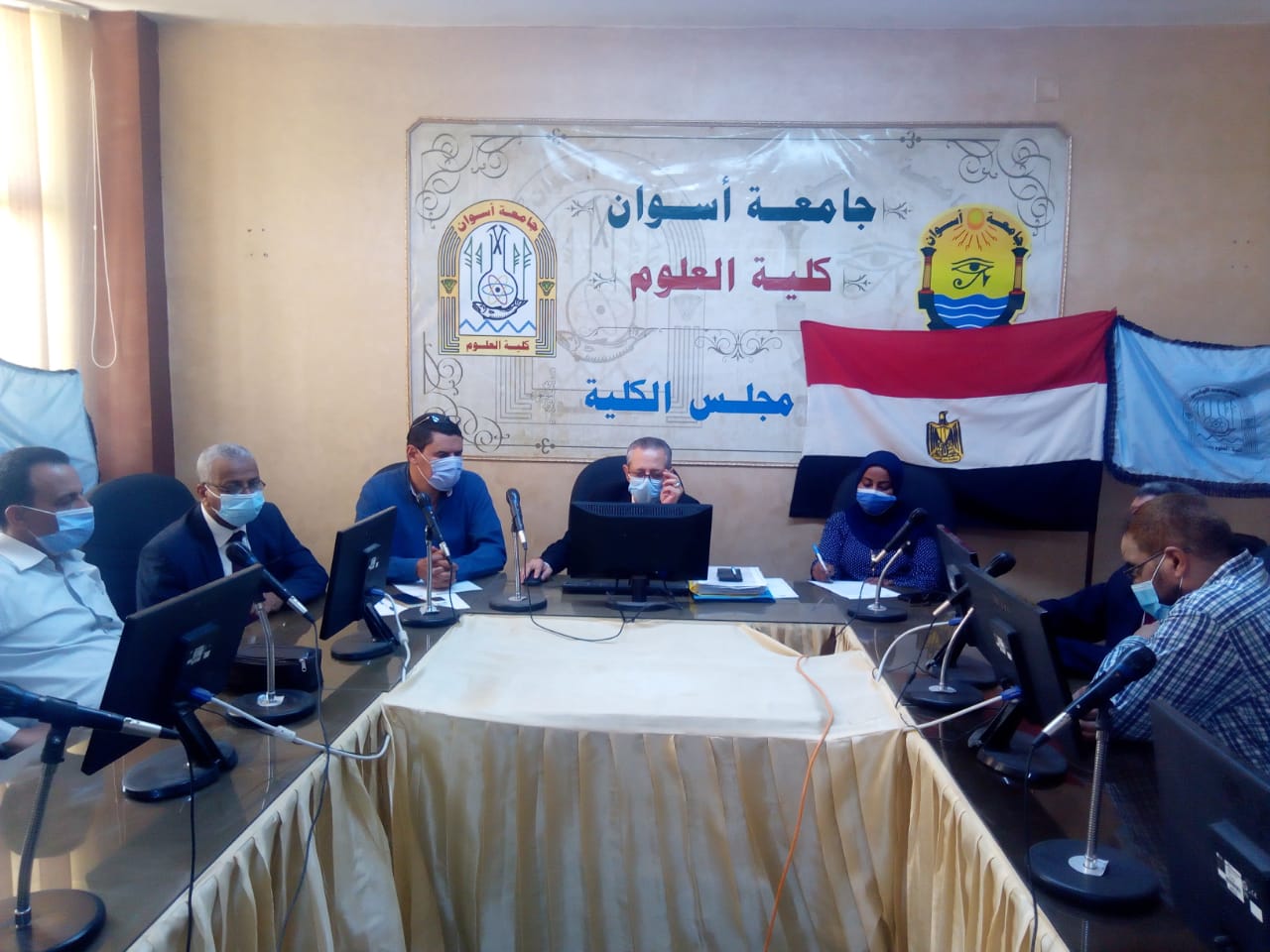 تم اليوم الأربعاء الموافق 2021/3/17 مجلس الكلية للعام الجامعي 2021/2020 برئاسة الأستاذ الدكتور/ عاطف إبراهيم عبد القادر – عميد الكلية – والأستاذ الدكتور/ محمد عبد المنعم رسلان – وكيل الكلية لشئون التعليم والطلاب – والأستاذ الدكتور/ علاء الدين صلاح الدين – وكيل الكلية لشئون الدراسات العليا والبحوث والأستاذ الدكتور/ محمد عبد الله جاد درويش – وكيل الكلية لشئون خدمة المجتمع وتنمية البيئة بقاعة مجلس الكلية، وقد ناقش المجلس بعض الأمور المتعلقة بالكلية وما استجد من أعمال .
