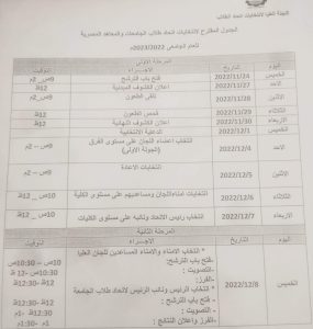Under patronage of Prof. Ayman Mahmoud Othman_ Aswan University president, Prof. Loai Saad El-Deen Nasrat_ Vice president for Education and students’ affairs, Prof. Alaa Hassan Noor El-Din _ Vice dean for Faculty of Science for environment affairs and society service, Youth welfare announces the start of student union election for the academic year 2022/2023 which will be held on Thursday 24/11/2022 to Thursday 8/12/2022, for those who want to participate in the elections of students unions at faculty of science. please go to theYouth welfare office, according to the schedule shown below. provided that Tomorrow, Thursday, corresponding to 11/24/2022, opening registration for candidacy and withdrawal of forms from the Youth Welfare Office. With our sincere wishes for success.