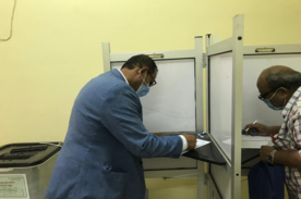 Today Aswan University president Prof/ Ahmed Ghallab Mohamed _Aswan University president _ casts a vote...