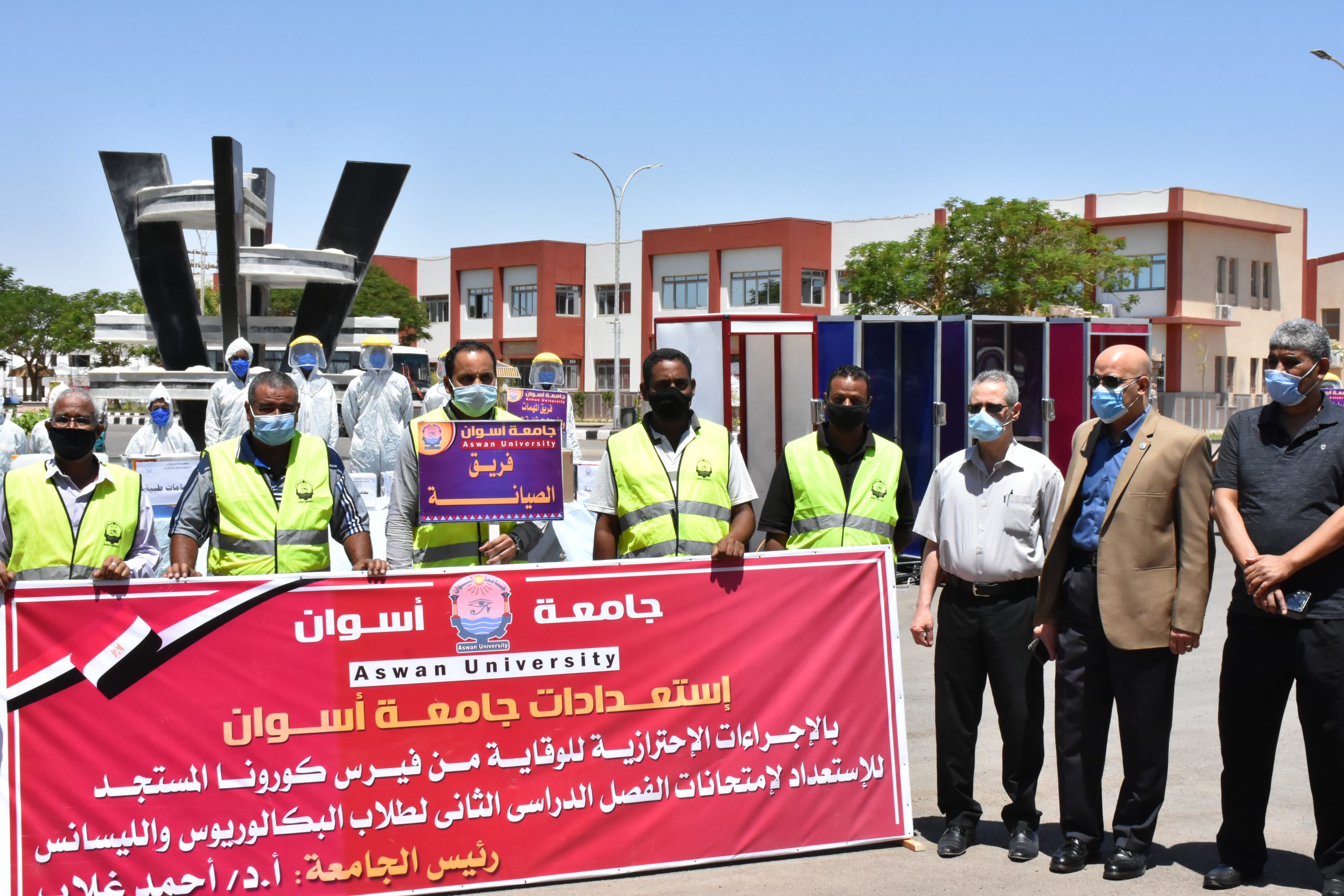 قام السيد الأستاذ الدكتور/ أحمد غلاب رئيس الجامعة ، والسيد الأستاذ الدكتور /عاطف إبراهيم عميد كلية العلوم ، والسيد الأستاذ الدكتور/ محمد عبد المنعم رسلان وكيل الكلية لشؤون التعليم والطلاب ، والسيد الأستاذ الدكتور/ علاء الدين صلاح وكيل الكلية لشؤون الدراسات العليا والبحوث، بتفقد لجان امتحانات الفرقة الرابعه الترم التاني لكلية العلوم للعام الجامعي 2019/ 2020 وقام سيادته بالوقوف علي جميع الاجراءات الاحترازية لعدم تفشي مرض كورونا وإتخاذ الإجراءات اللازمة لحماية الطلاب والسادة المراقبين والملاحظين والقائمين علي أعمال الامتحانات، والتي سوف تبدأ يوم 11/7/2020 .