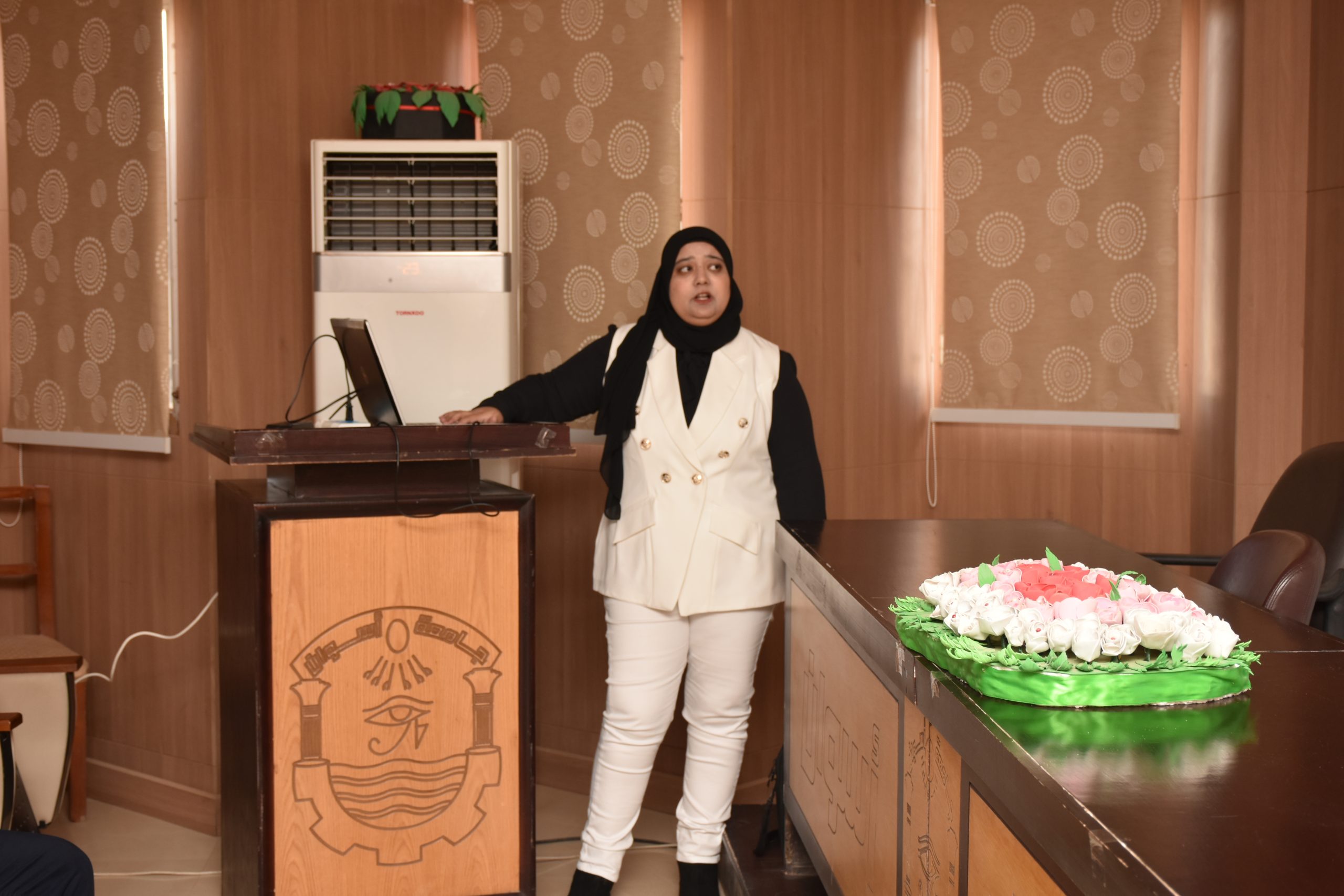 عقد اليوم الخميس سمينار علمي رسالة الدكتوراه للباحثة / علا حمادة فتحي العبد الموافق 2024/11/28
