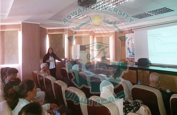 د / طارق أحمد عبد الوهاب رضوان - مدرس علوم البيئة - قسم النبات - كلية العلوم - جامعة أسوان وحضر السمينار الأستاذ الدكتور/ أشرف إمام عبدالرضى _ نائب رئيس الجامعة لشئون خدمة المجتمع وتنمية البيئة والمشرف على كلية العلوم