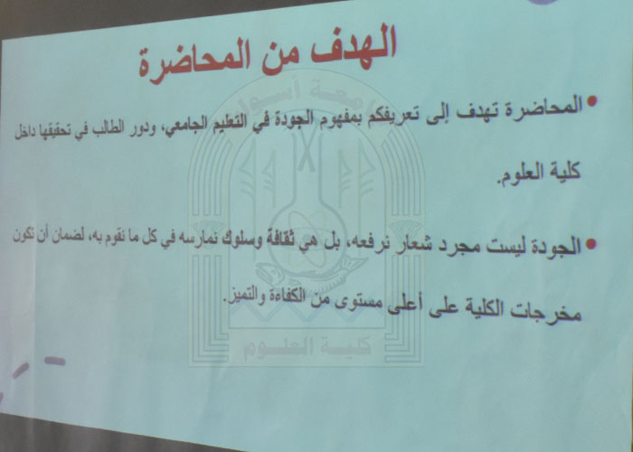 تحت رعاية السيد الأستاذ / الدكتور أبو الحمد حسن محمد – عميد كلية العلوم، نظمت وحدة ضمان الجودة والاعتماد بالكلية اليوم الثلاثاء الموافق 14 أكتوبر 2025م ورشة عمل بعنوان “دليل الطالب للجودة”، قدمتها الدكتورة نورا شرقاوي أبازيد – الأستاذ المساعد بقسم النبات.