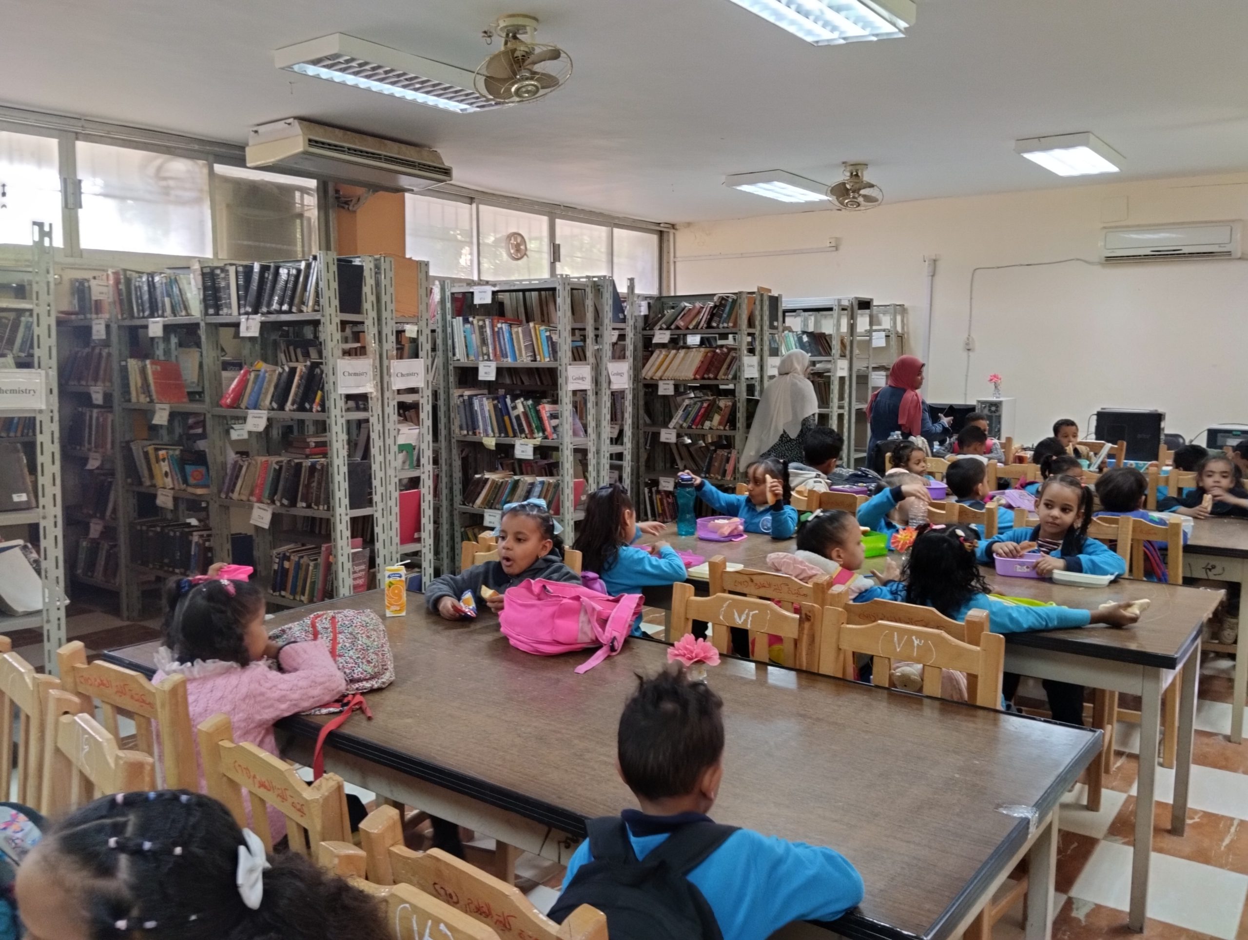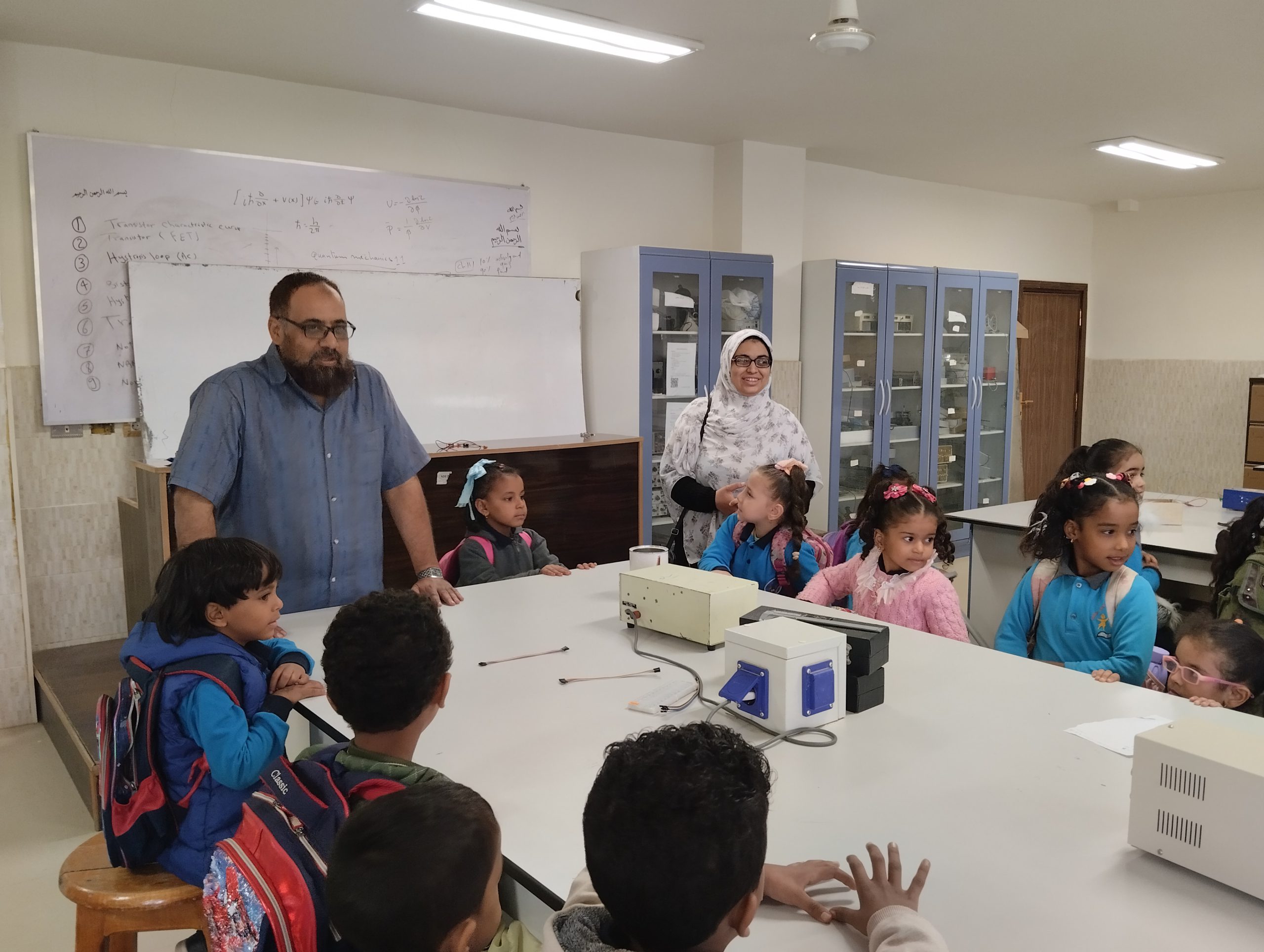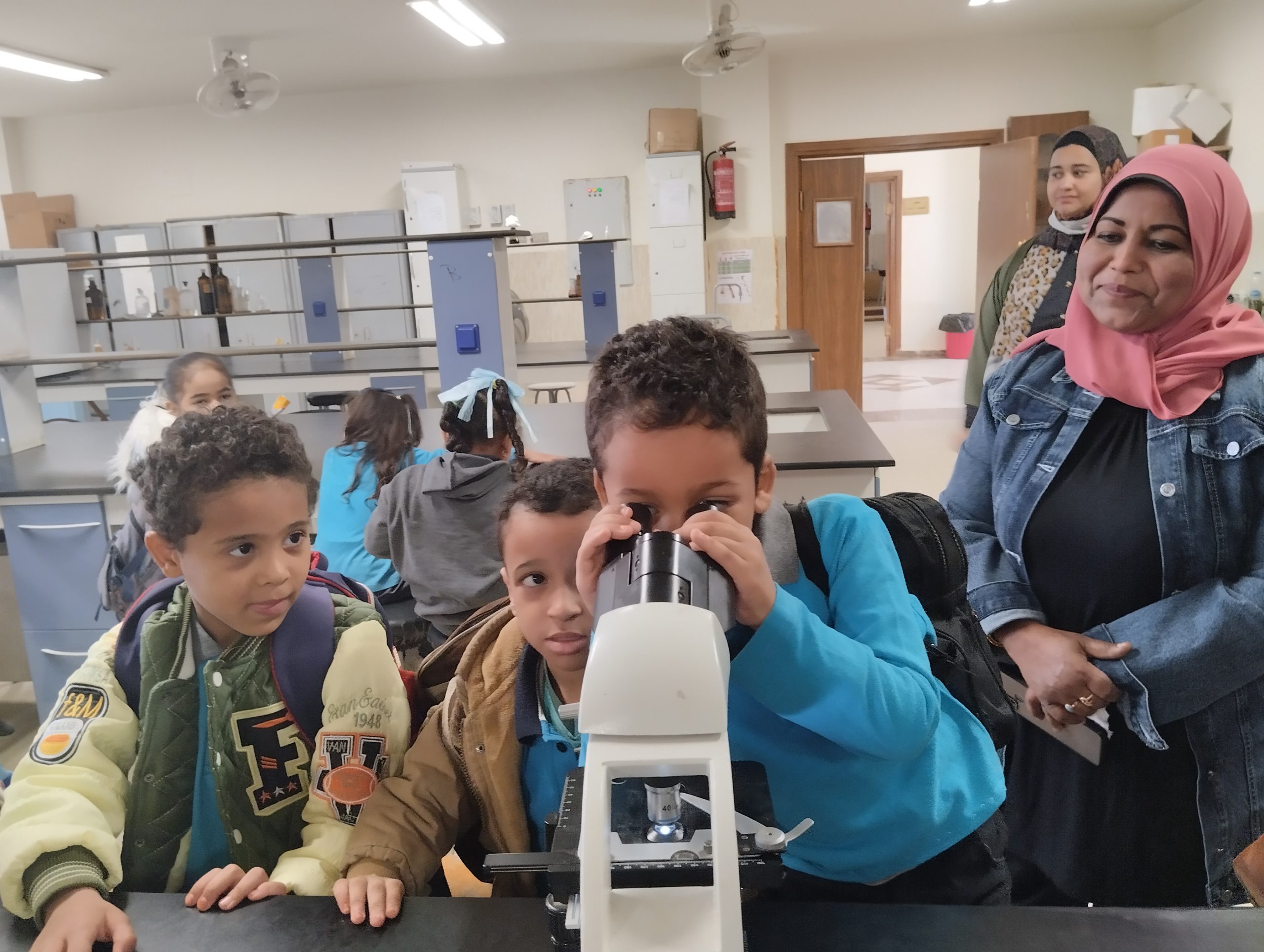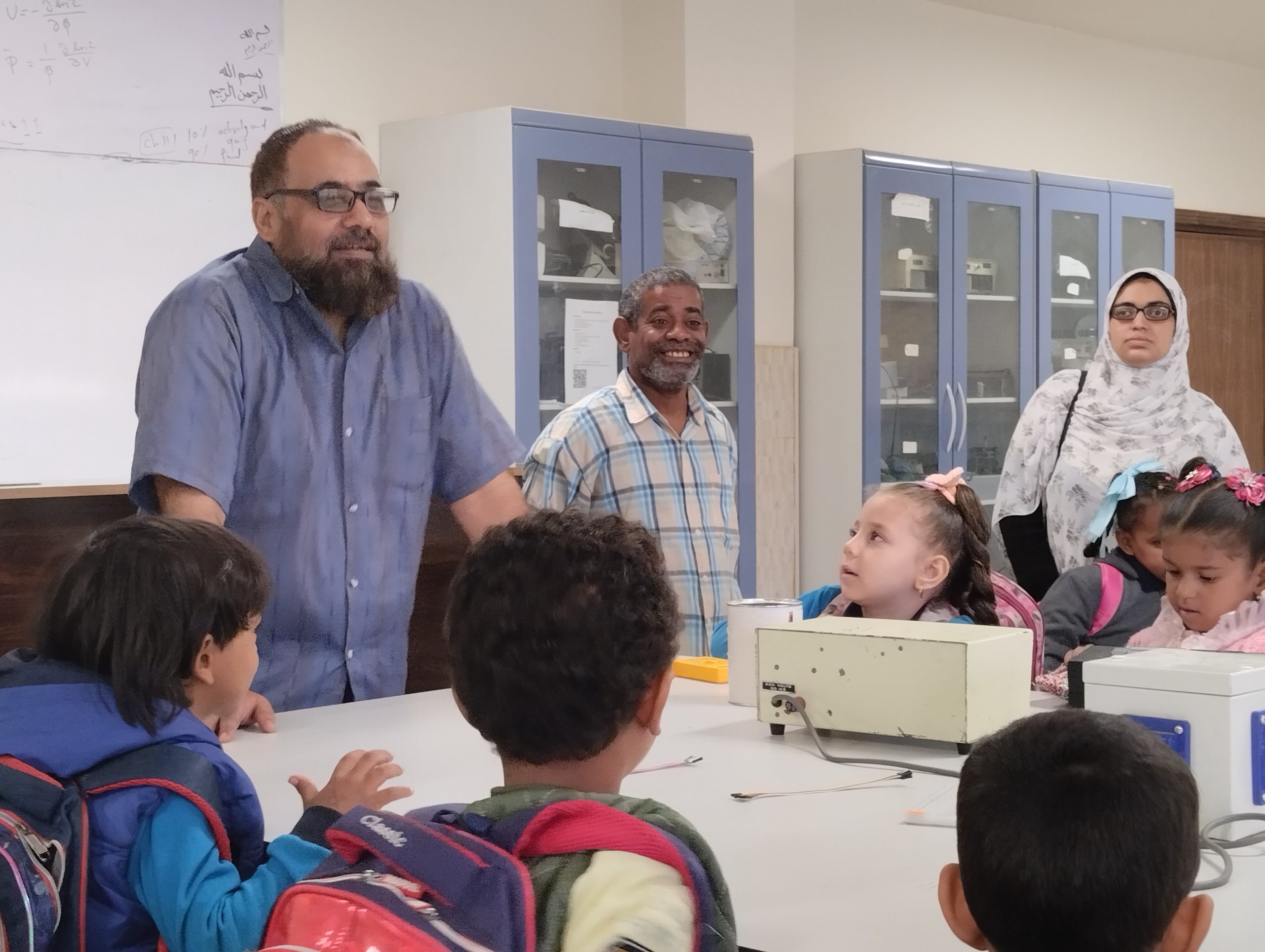 تحت رعاية الأستاذ الدكتور/ أيمن محمود عثمان – رئيس الجامعة قام اليوم الاربعاء الموافق 2022/11/30 الأستاذ الدكتور/ علاء حسن نور الدين- وكيل الكلية لشؤون خدمة المجتمع وتنمية البيئة والاستاذة/ أسماء عوض – امين الكلية ، باستقبال طلبة وطالبات حضانة انس بن مالك لزيارة معامل كلية العلوم ، وقد تم زيارة كل الأقسام العلمية بالكلية والمكتبة وقام السادة أعضاء هيئة التدريس من كل قسم بشرح وافي عن كل قسم والرد علي كل أسئلة الطلاب