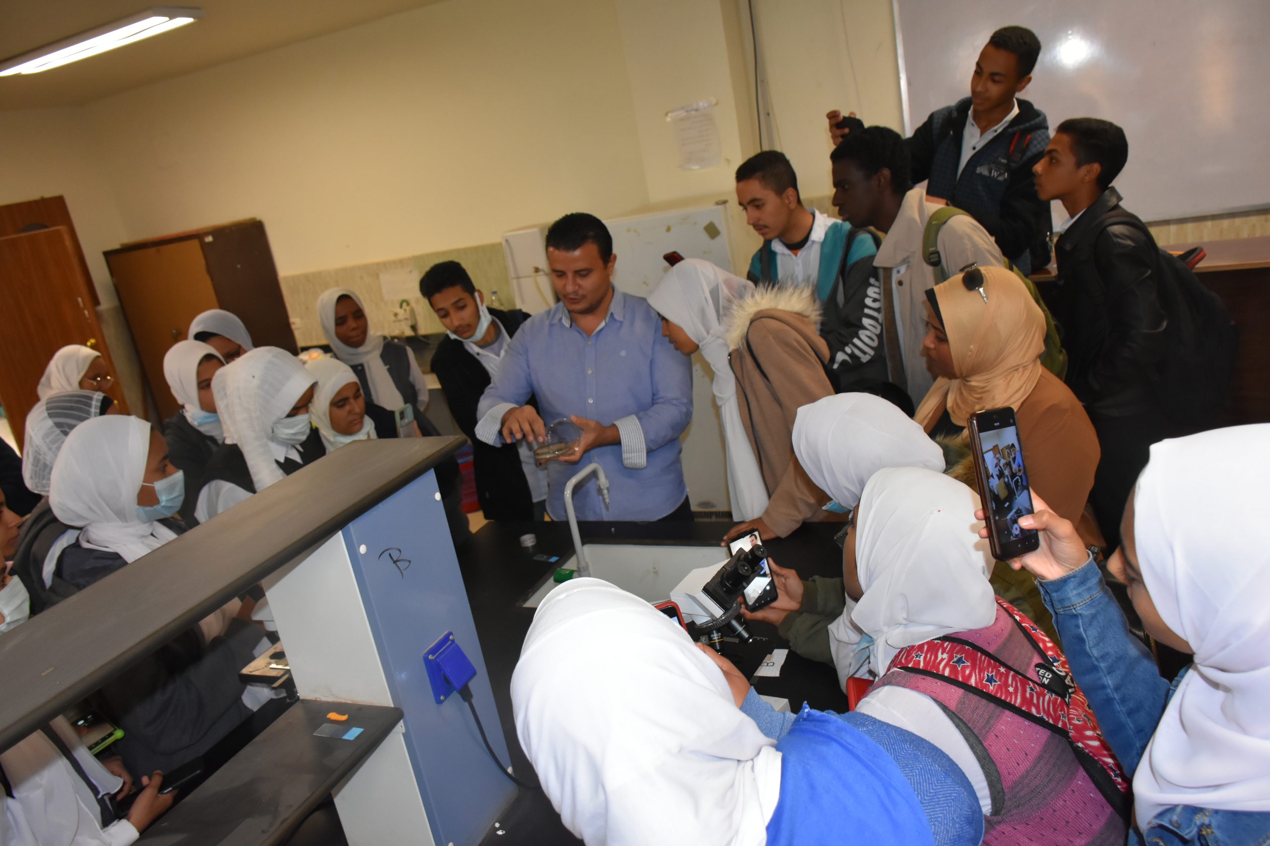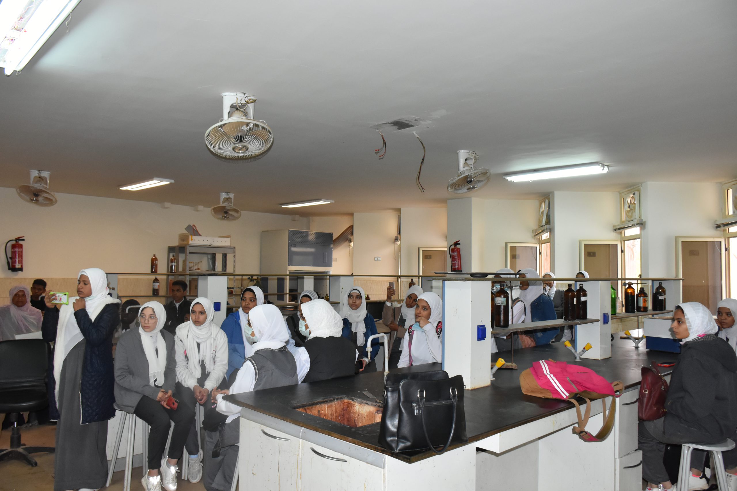 تحت رعاية الأستاذ الدكتور/ أيمن محمود عثمان – رئيس الجامعة قام اليوم الخميس الموافق 2021/12/16 الأستاذ الدكتور/ عاطف ابراهيم عبد القادر – عميد الكلية بإستقبال طلبة وطالبات مدرسة جمال عبد الناصر الثانوية المشتركه لزيارة معامل كلية العلوم ، وقد تم زيارة كل الأقسام العلمية بالكلية وقام السادة أعضاء هيئة التدريس من كل قسم بشرح وافي عن كل قسم والرد علي كل أسئلة الطلاب.