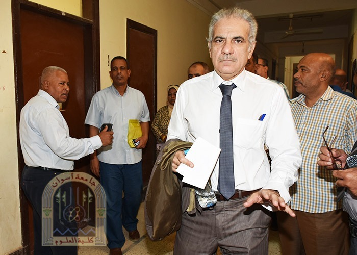 والأستاذ الدكتور/ علي حمدان – وكيل الكلية لشئون خدمة المجتمع وتنمية البيئة والأستاذ الدكتور/ ابوالحمد حسن – رئيس قسم الكيمياء والأستاذ الدكتور/ عصام عبد السلام شعلان – رئيس علم الحيوان